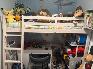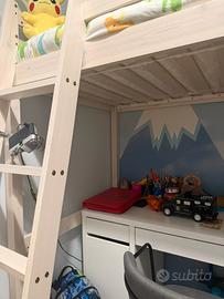 Letto a soppalco Gedeon II in pino massello sbiancato + materasso, usato pochissimo, comprato da vente-unique a 290 euro, da ritirare previo smontaggio a Roma zona Basilica San Paolo entro il 13/07