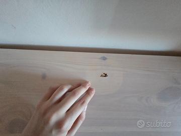 Il letto é stato usato pochissimo ed é in ottime condizioni generali, segnalo solo un piccolo foro sulla scrivania, sulla parte che poggia al muro c'é un po' di colla che hanno lasciato degli adesivi, facilmente rimovibile con isopropilico, e una piccola parte sempre sul retro dove si é tolta un po' la vernice (non visibile perché poggia al muro).
