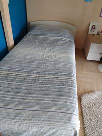 Vendo struttura letto a soppalco in legno di ottima qualità (marca OASIS) , ribaltabile con letto inferiore indipendente (dotato di ruote con blocco), scaletta con contenitori separabili e molto capienti e comodino con due cassetti. Misura per materassi : letto superiore 90cmx200cm , letto inferiore misura standard (max 90cm x200cm). Fornisco altre misure su richiesta .e informazioni . Da smontare , trasporto a carico acquirente