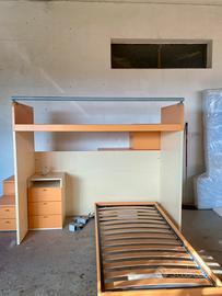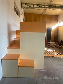 Vendo letto a soppalco completo di struttura, rete a doghe e scala a gradini con cassetti contenitore integrati, molto comodi per riporre giochi, biancheria o oggetti vari.