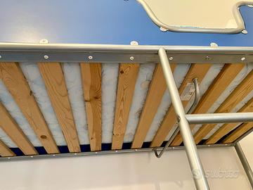 Letto a soppalco Ikea con scaletta fissa e scrivania nella parte bassa.
