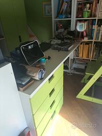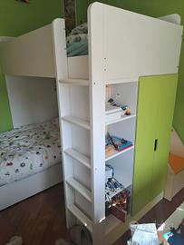 Svendo per necessità di liberare la stanza: letto a soppalco Ikea Smastad bianco e verde composto da letto singolo con sponde alte e scala, armadio a 2 ante, modulo libreria, scrivania a 3 cassetti, scala contenitore laterale (quella laccata arancione in foto) con 3 cassetti nei gradini e contenitore grande sotto la pedana.