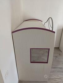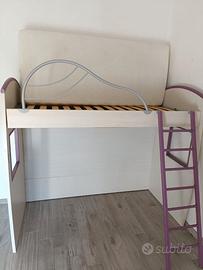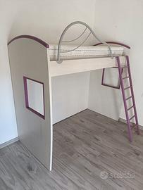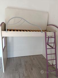 Letto a soppalco più materasso. Altezza 172,5 cm Profondità 95cm Larghezza 199cm Lo smontaggio e il trasporto è a carico dell'acquirente.