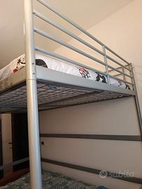 Vendo letto a soppalco Ikea in ottime condizioni, di colore grigio, usato pochissimo, Ingombro massimo 146 x 209 x h.206, misure da una piazza e mezzo. Completo di materasso originale 140x200x10 e di scaletta, mai fissata. Non spedisco, ritiro in loco.