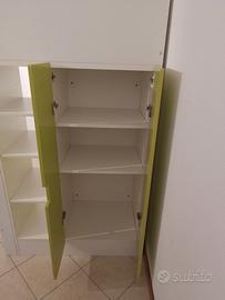 Letto a soppalco Ikea con scrivania, cassettiera e armadio laterale. Colori bianco e verde, misure in foto. La scrivania ha qualche graffietto.