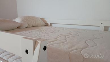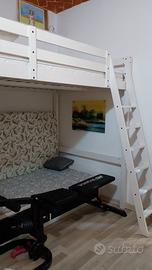 Vendo letto a soppalco IKEA modello STORA, dimensioni 140x200 cm, finitura mordente bianco. Condizioni eccellenti, praticamente come nuovo: utilizzato solo 2 volte. Struttura molto solida e stabile, perfetta per ottimizzare gli spazi in camera. Inclusi nel prezzo: Materasso IKEA originale Secondo materasso più alto di spessore, molto confortevole Prezzo: 350 € Smontaggio e trasporto a carico dell’acquirente.