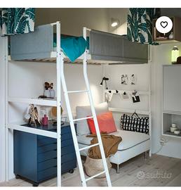 Letto a soppalco IKEA dimensioni come in foto usato pochissimo, compreso di doghe e materasso. Ritiro su Salerno