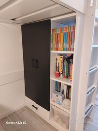 Vendo letto a soppalco Ikea. La struttura è composta da letto, armadio con cassetto, scrivania con cassettiera. Volendo anche materasso. Tutto è in condizioni perfette. Unica cosa da sostituire sono gli adesivi antiscivolo della scaletta.