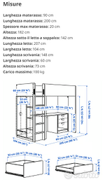Vendo letto (MAI USATO) a soppalco Ikea Smastad, bianco rosa pallido, scrivania con 4 cassetti. Le misure dettagliate sono in una foto. Smontaggio e trasporto a carico dell'acquirente.