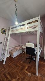 Struttura per letto a soppalco, mordente bianco, 140x200 cm. Un letto a soppalco ti permette di combinare tante funzioni in poco spazio. Sotto il letto puoi creare una zona relax, una cabina armadio o uno spazio di lavoro.La scala si può montare sul lato destro o sul lato sinistro.I del letto.