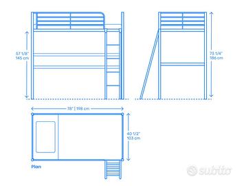 Letto a Soppalco IKEA SVARTA 90x200 Smontato