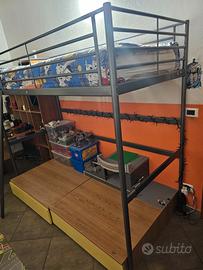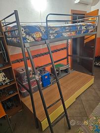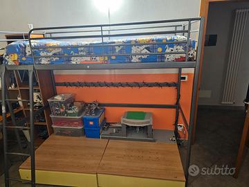 Vendo struttura letto a soppalco IKEA modello SVÄRTA in metallo color argento/antracite. È la soluzione perfetta per chi vuole guadagnare spazio in camera: sotto il letto rimane un’area libera di circa 145 cm d'altezza, ideale per scrivanie, divanetti o zone gioco.