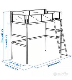 letto ikea Vitval,con materasso incluso, ottime condizioni, doghe in legno, scaletta. Utile soluzione salvaspazio per mettere una scrivania sotto la struttura. il letto è gia smontato e si può visionare e eventualmente ritirare presso nostro garage di comoda accessibilità