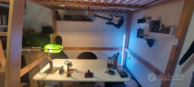 vendesi letto matrimoniale alla francese (140×200) in vero legno con scala amovibile ripiano. questo tipo di letto è utilissimo per stanze piccole e monolocali, perché consente di creare nello spazio sottostante una zona vita con divano e TV oppure zona lavoro e studio con scrivania oppure di inserire un ulteriore letto. Ottimo per ottimizzare spazi in case da affittare.