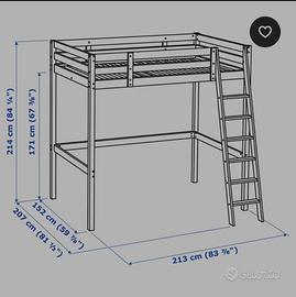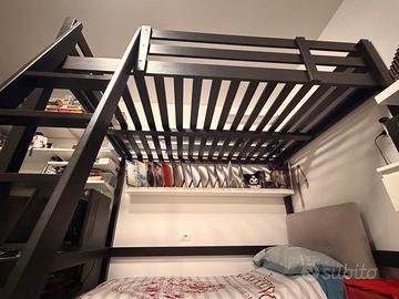 STORÅ ikea Struttura per letto a soppalco, matrimoniale, nero, 140x200 cm Altezza totale 214 cm Acquistata 1 anno fa e usata solo come letto "per gli ospiti" La scala si può montare sul lato destro o sul lato sinistro del letto. È in legno massiccio