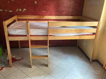 Vendo letto a soppalco in legno vivo,con materasso a una piazza e mezza, smontaggio e trasporto a casa dell acquirente,si trova a piano rialzato.