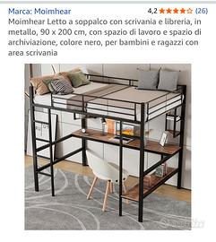 letto a soppalco in stile industriale, misure in foto. Acquistato a marzo 2025 praticamente MAI usato perché a mio figlio non piace (dorme sul divano) per soffitti alti 2,70 come il mio c'è spazio per il movimento. resta abbastanza spazio dal letto al soffitto perché in totale è alto 1,80