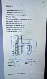 Letto soppalco Småstad Ikea in buono stato, dotato di scrivania, libreria e piccolo guardaroba. Materasso incluso. Si consegna già smontato. Trasporto a carico dell’acquirente.