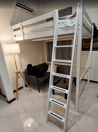 Letto STORÅ Ikea bianco a soppalco da una piazza e mezzo (larghezza 140 cm) con relativo materasso VESTERÖY, tutto in buono stato. Come da foto è già parzialmente smontato, in modo da essere facilmente trasportato. Ritirabile di persona a Panchià in Val di Fiemme (Trento).