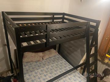 Letto a soppalco modello STORA di IKEA, misure: 140x200, colore nero. Il letto è rovinato in alcune assi davanti, ci sono dei buchi perchè era appeso qualcosa.