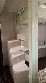 letto a soppalco fatto da un artigiano. una piazza e mezza con piano per scrivere e scala con scomparti