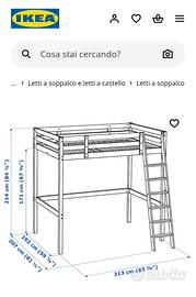 Vendo letto a soppalco Ikea, una piazza e mezza, in legno colore nero, con doghe e con scaletta (materasso escluso), altezza da terra...cm, costo 250 euro.