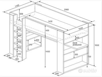 Letto a soppalco usato pochissimo come nuovo. Lo vendo senza materasso. Solo ritiro sul posto. Non spedisco.