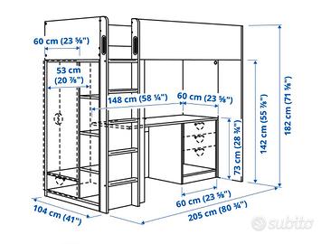 Letto a soppalco IKEA smastad colore bianco Con scrivania, cassettiera e armadio laterale 2 ante. Misure 105x205xh182cm Ottimo stato