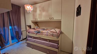 composizione tre letti di cui due estraibili e indipendenti, comprensivo di due scrivanie e due cassetti estraibili misure L 200 P 92 H 110. si precisa che la composizione dei mobili intorno al letto a ponte nin è in vendita.