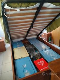 letto a cassettone ad una piazza e mezza, in legno con testata, rete doghe in legno, smontato e pronto per essere trasportato