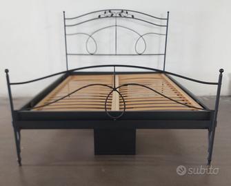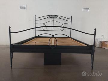 Letto alla francese Cantori in ferro battuto pieno in finitura antracite, levigato, lucidato e rifinito a mano. Compreso di rete a doghe L.140 P.190 completo di materasso in lattice