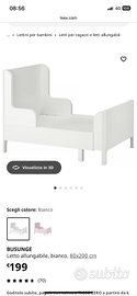 Letto allungabile Ikea bianco, Materasso e coppia lenzuola comprese