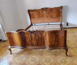 Letto rivestito in radica completo di rete a doghe. Anni 50.