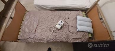 Il letto è completo di sponde di contenimento e di kit antidecubito completo di materassino a bolle d’aria e compressore con dispositivo di regolazione della pressione.