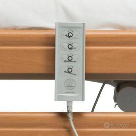 Telecomando con cavo, 4 ruote piroettanti con freni, motore cambiamento piano rete con centralina incorporata, testiera in legno e materasso anti decubito.