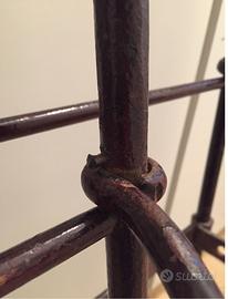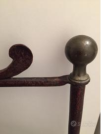 Letto singolo ‘800 ferro battuto con pomoli ottone sulla testiera. Realizzazione semplice, ma sorprendente nella tecnica ottocentesca. Volendo provvisto di rete lignea a doghe.