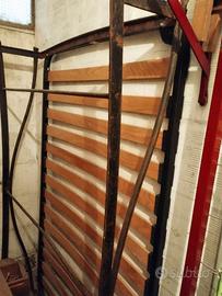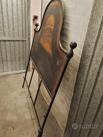 Vendo bellissimo letto antico con testiera e pediera in ferro dipinto (innamorati in campagna), completo di rete a doghe nuova montata sul vecchio telaio (starebbe bene in una camera per agriturismo)