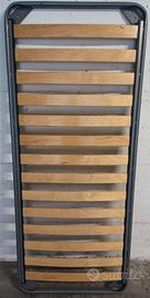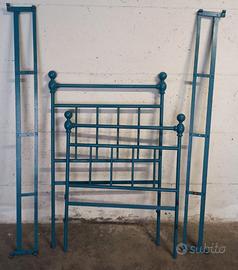 Letto antico in ferro battuto (1 piazza). Larghezza 90 cm, altezza testiera 150 cm. Completo di rete in doghe