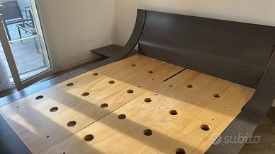 Letto Aqua , marca Presotto , in rovere grigio completo di comodini integrati, presenta segni di usura . Visto e piaciuto. No perditempo