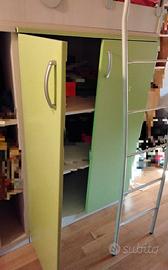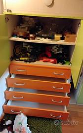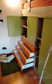 Per camera bambino, vendo un letto singolo con sotto l'armadio massiccio. Usato, ma in buono stato. Utile per guadagnare spazio nella stanza.
