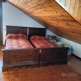 Coppia di letti in legno arte povera. colore marrone scuro. Ritiro a carico dell'acquirente