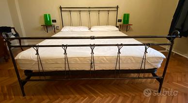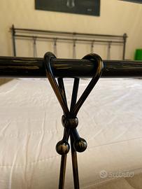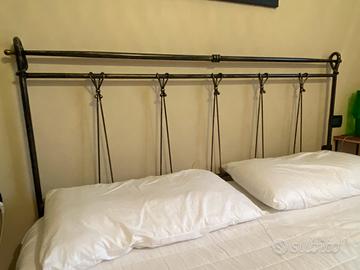 Letto matrimoniale, prodotto artigianalmente in Italia, in ferro battuto nero con delicate pennellate dorate. Usato ma come nuovo; vendo oer acquisto letto con contenitore. C’è la possibilità di acquistare anche la rete (prezzo da trattare).