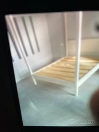 Letto a baldacchino in legno sbiancato fatto da falegname 7 anni fa in ottime condizioni materasso 150/190. Trattabile