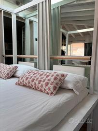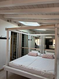 Letto a baldacchino con sue doghe in perfette condizioni. Svendo Causa poco spazio e inutilizzato da troppi anni. Di suo era di colore marrone scuro e quindi riverniciato di colore bianco.( eventualmente da ritoccare con colore bianco in qualche punto. Smontato occupa poco spazio (per portare via) perché tutto molto semplice. Per avere maggiori informazioni chiamatemi. Non spedisco.