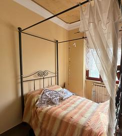 Letto baldacchino, reale ferro battuto , 1 piazza , comprende 2 tende e rete , condizioni ottime