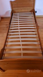 Letto per bambini usato marca Ikea in buone condizioni, allungabile fino a cm. 200. larghezza materasso 80 cm. Completo di rete a doghe fissa di misura 80x 200. Il letto è in legno massello colore marrone. Il letto attualmente è smontato e occupa pochissimo spazio.