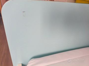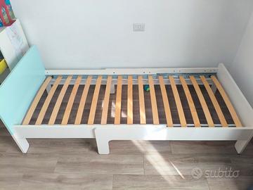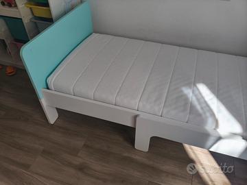 Letto Ikea modello slakt completo di materasso Asvang. Dimensioni 80x200cm. Il letto è in ottime condizioni, presenta solo quella imperfezione che si vede in foto. Colore bianco con testata azzurra.