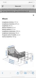 Lettino in ferro con doghe allungabile MINNEN di IKEA con sponde di sicurezza .