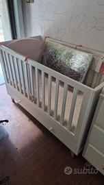Letto a sbarre evolutivo neonato in legno di pino e legno di faggio bianco opaco lunghezza 146cm Larghezza 76cm Altezza 94cm