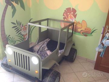 vendo a malincuore letto da bambino a forma di jeep Wrangler misure interne materasso 140x80circa autocostruito